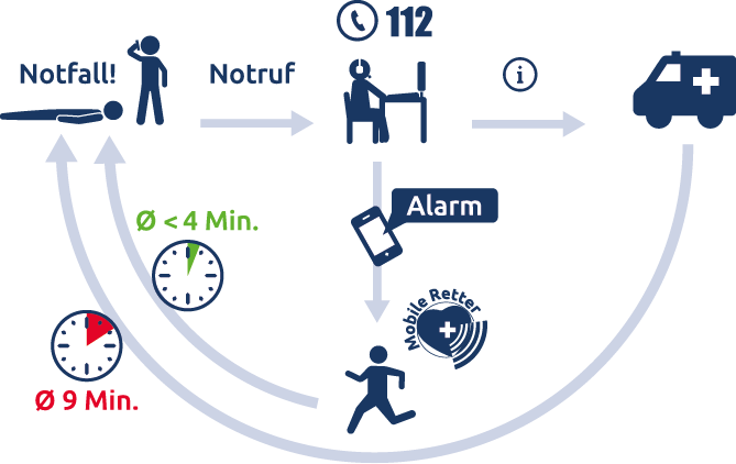 Mobile Retter ist ein digitales Zusatzsystem zur klassischen Rettungskette, das darauf abzielt, die kritische Zeitspanne zwischen Notruf und Eintreffen des Rettungsdienstes wirkungsvoll zu überbrücken. Sobald über die Leitstelle ein medizinischer Notfall eingeht, werden über das System automatisch medizinisch qualifizierte Ersthelferinnen und Ersthelfer in der unmittelbaren Umgebung identifiziert und per Smartphone-App alarmiert. Diese Personen können sich häufig bereits in unmittelbarer Nähe des Einsatzortes befinden und treffen dadurch oft mehrere Minuten vor dem Rettungsdienst ein.