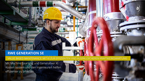 Um die Risiken eines Kraftwerksausfalls zu reduzieren und gleichzeitig Qualität und Effizienz der Wartung zu verbessern, beauftragte RWE den IT-Dienstleister adesso mit der Umsetzung einer Data & Digital-Plattform, die Daten aufbereitet und verknüpft – mit Hilfe von KI und Machine Learning. Es entstand ein digitales Dashboard, das bei der Wartung unterstützt und hilft, mögliche Störfälle zu prognostizieren. Das Dashboard wird ergänzt um einen virtuellen Assistenten, basierend auf großen Sprachmodellen (LLM).