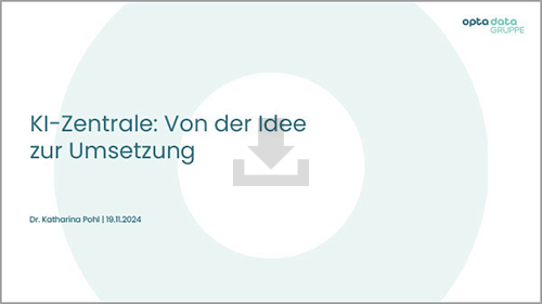 Die familiengeführte opta data-Gruppe entwickelt seit über 50 Jahren passgenaue Services und digitale Lösungen für den betrieblichen Alltag von Gesundheitsfachberufen. Ihnen bietet das Unternehmen zukunftsfähige Finanzierungslösungen, digitale Abrechnungsdienstleistungen und Softwarelösungen, um Arbeitsprozesse zu optimieren. Dafür kam Künstliche Intelligenz zu Beginn nur punktuell zum Einsatz – das volle Potenzial der Technologie ließ sich so kaum ausschöpfen. Das rief die Mathematikern Katharina Pohl auf den Plan: Sie entwickelte mit der KI-Zentrale eine Blaupause für die erfolgreiche Digitalisierung komplexer Organisationen.